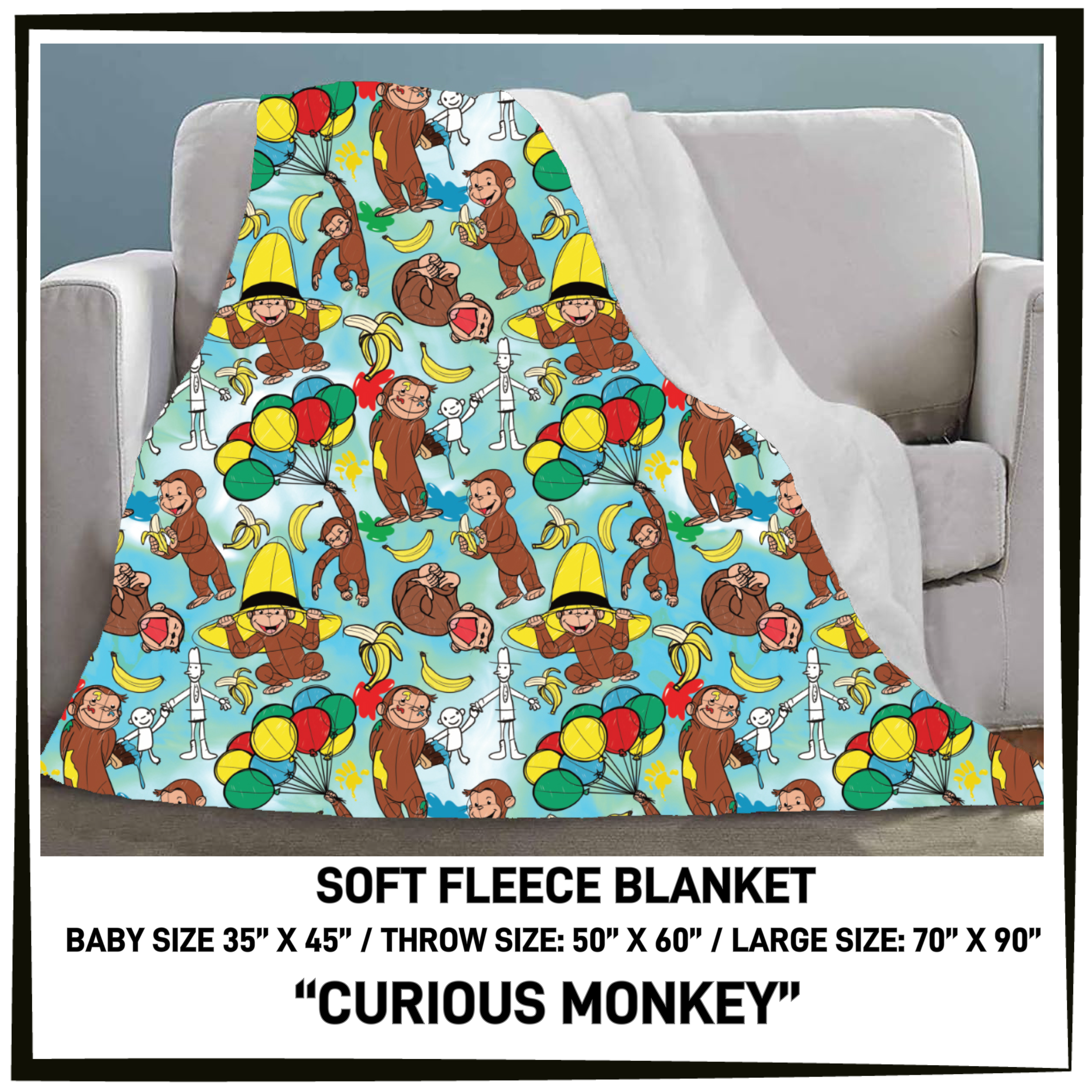 FL9C - Curious Monkey Fleece Blanket - Preorder Closes 2/3 ETA: Late April